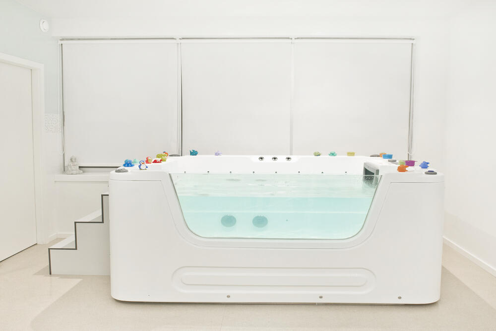 A terapeuta recebe a familia, tem água, café, chá e bolachinhas se desejarem, entretanto vão preencher uma ficha técnica para que possamos conhecer melhor o bebé. De seguida entramos para a sala dos jacuzzis um dos tutores legais vai despindo o bebé, enquanto o outro tutor troca de roupa para entrarem juntos para o Jacuzzi. Vamos estimular o bebé e trabalhar o vinculo afetivo. Por fim vamos massajar o bebé e o adulto se desejar pode continuar a desfrutar do jacuzzi. O balcão de massagem é mesmo ao lado do jacuzzi não perde a visão do bebé.